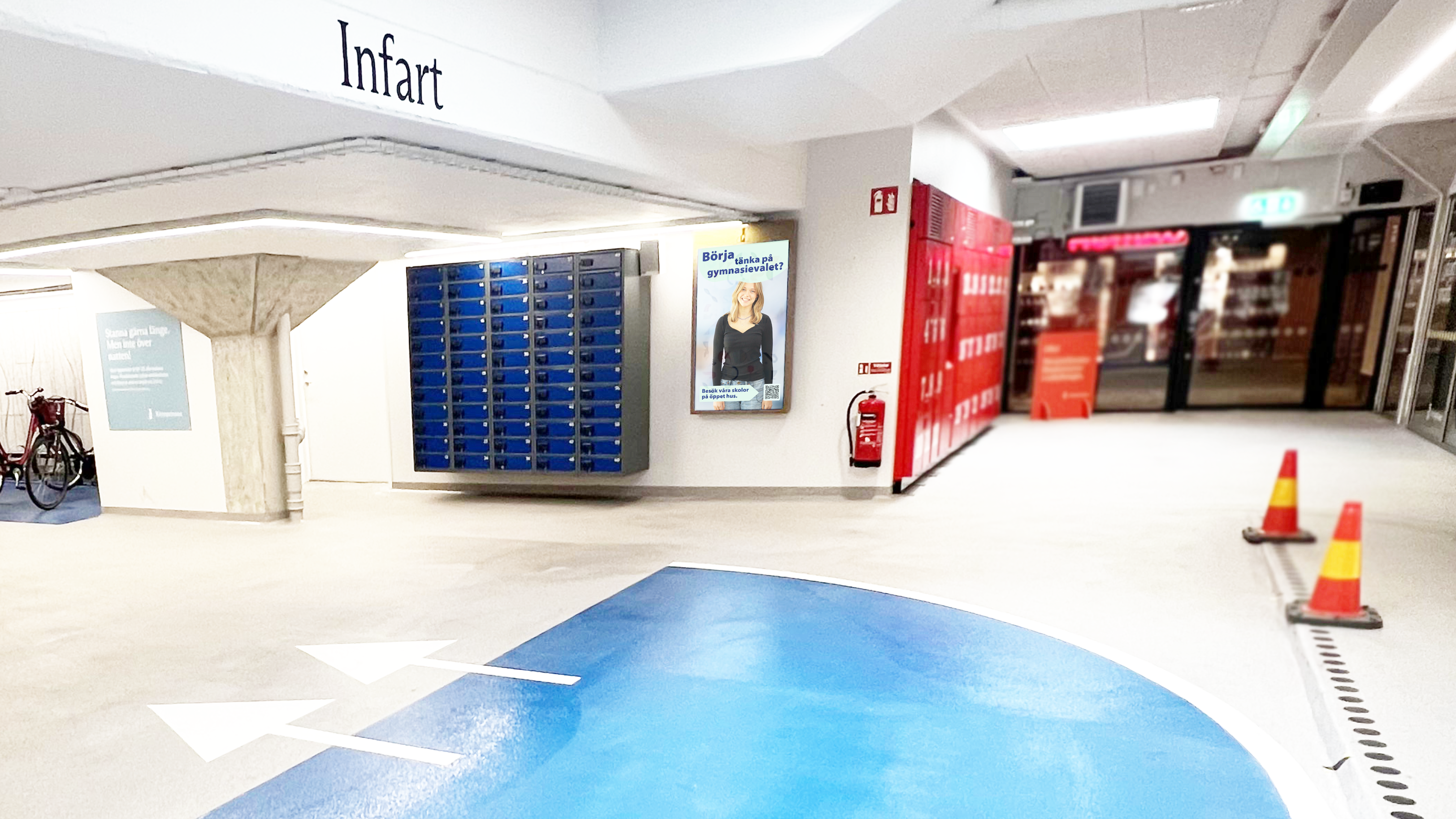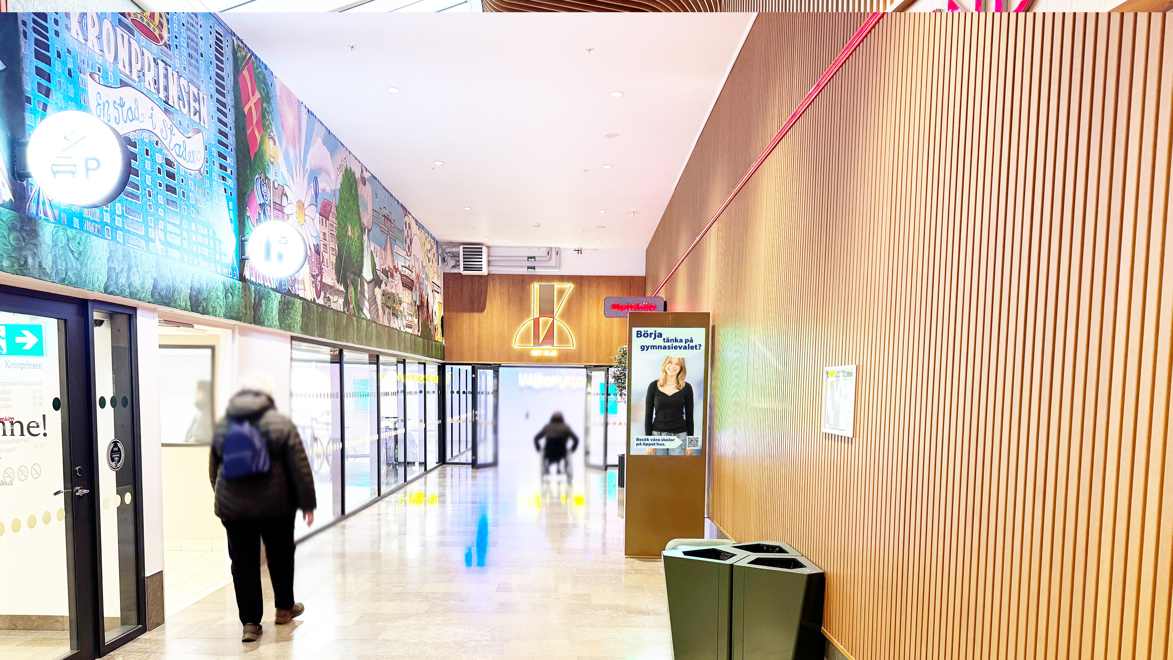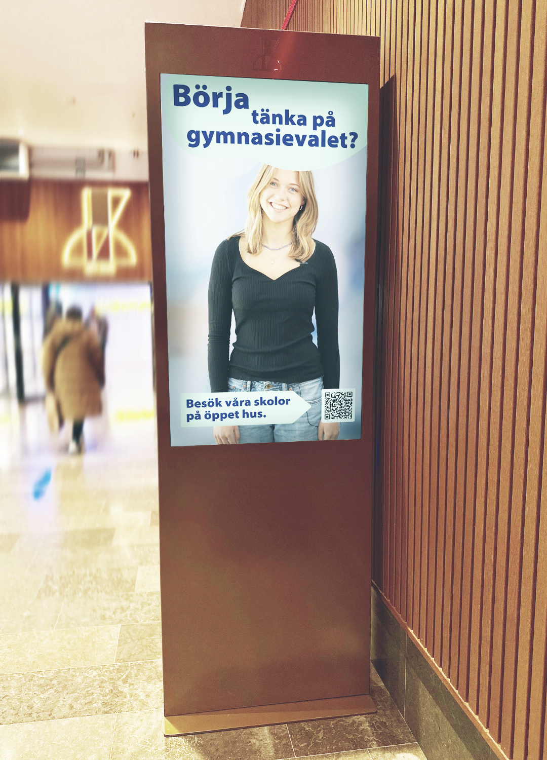 Ni syns på 8 st skärmar (55 tum) i stående format som är placerade runt om i köpcentrumet.