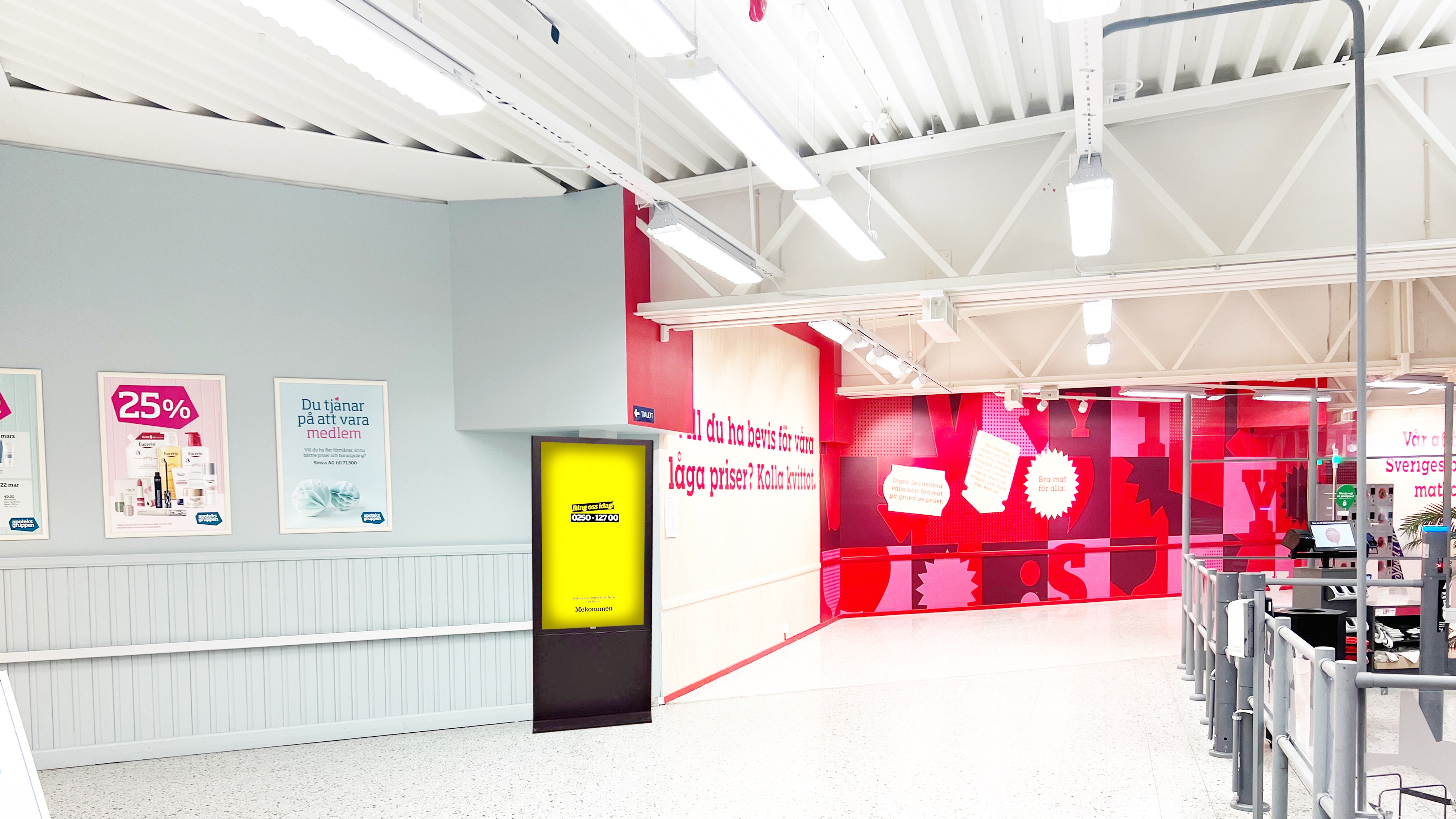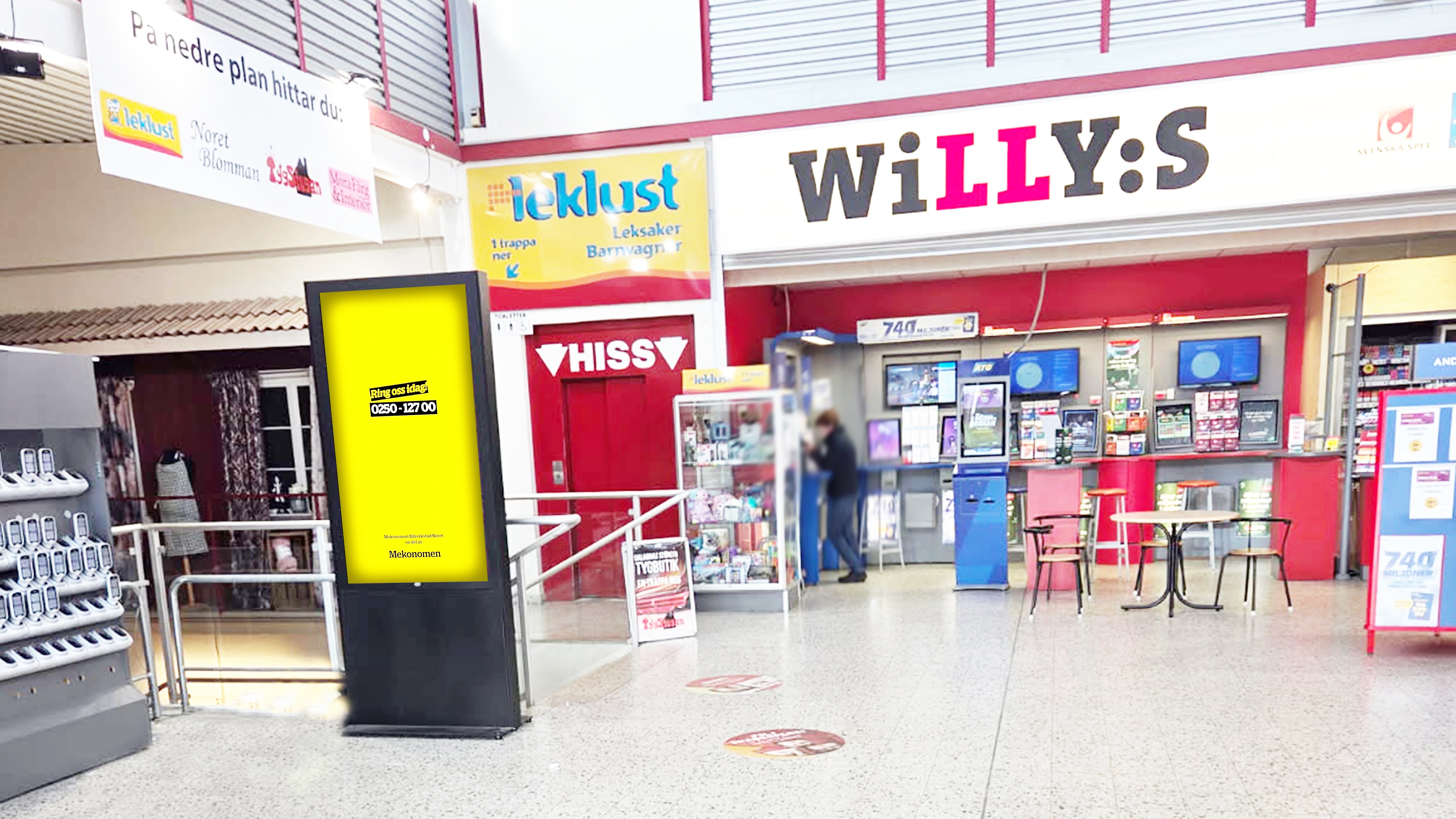 Ni syns på totalt 2 st skärmar, varav 1 st skärm till höger om ingången till Willys och 1 st i delen utanför Willys kassadiskar.